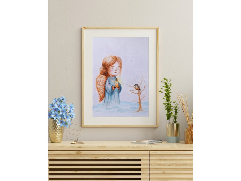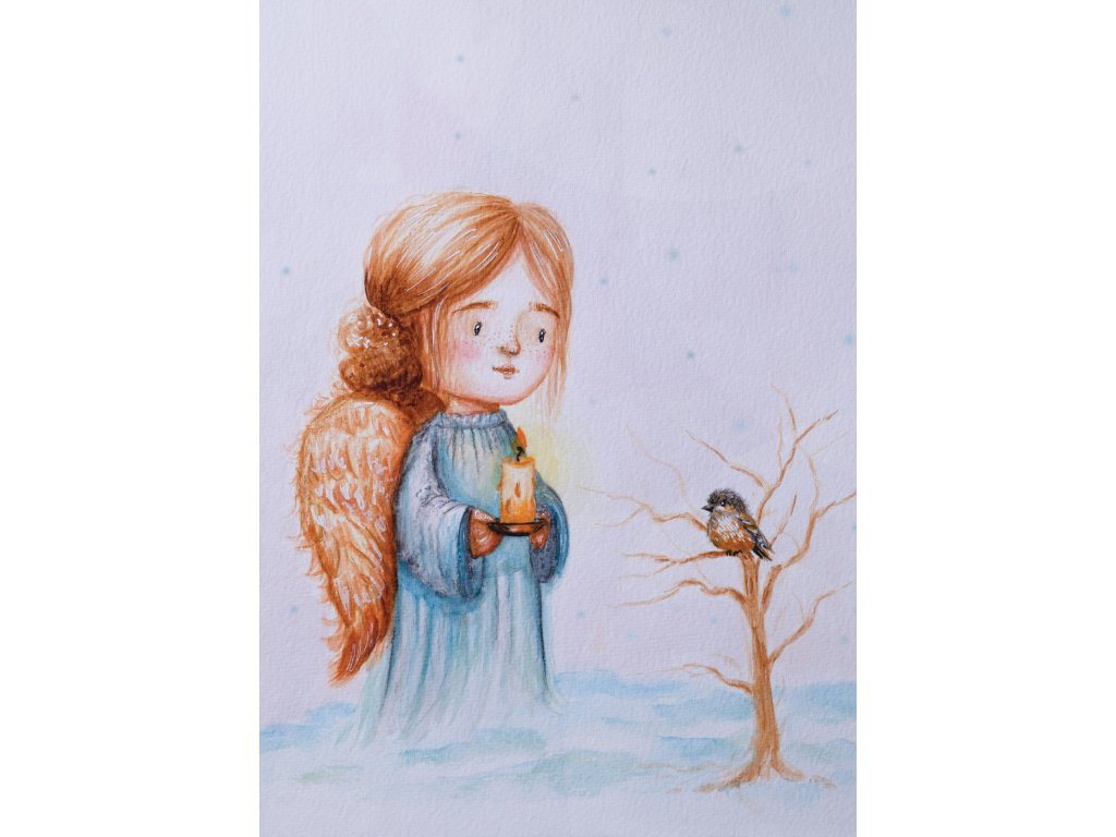 Andělský obraz Zimní anděl se svíčkou - autorský tisk A4