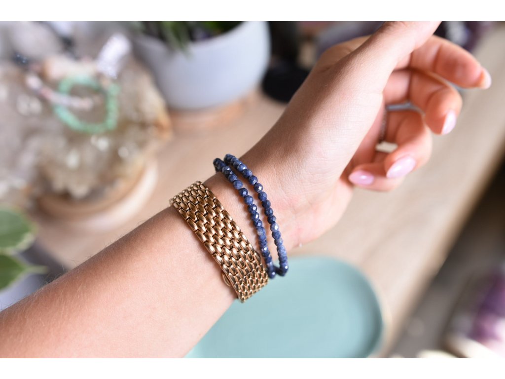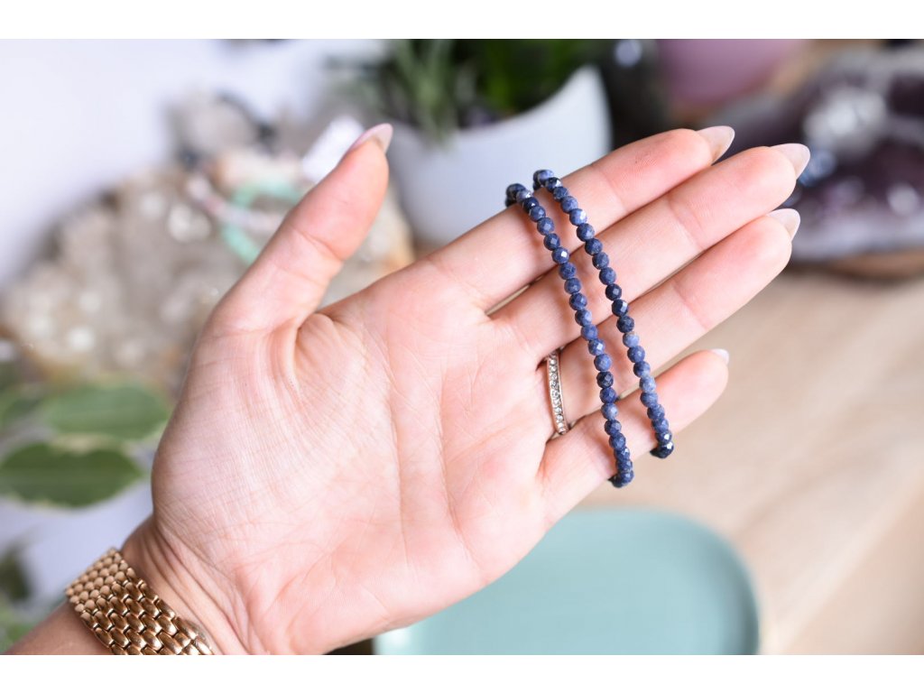 Safír vybroušený náramek 4mm AAA (víra, osud, jedinečnost, odvaha, moudrost)
