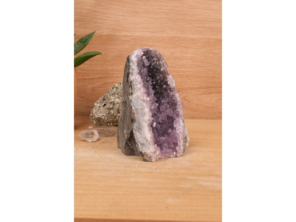 Vlastnosti: Ametyst je kámen ochrany a intuice, ale nese si s sebou spoustu dalších krásných vlastností. Ochraňuje svého majitele a dodává mu pozitivní postoj k různím situacím a díky tomu mu je pomáhá lépe zvládat. Pomáhá duchovně růst a je vhodný při meditacích (podobně jako křišťál, angelit).Čistí auru.