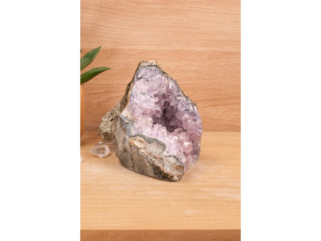 Vlastnosti: Ametyst je kámen ochrany a intuice, ale nese si s sebou spoustu dalších krásných vlastností. Ochraňuje svého majitele a dodává mu pozitivní postoj k různím situacím a díky tomu mu je pomáhá lépe zvládat. Pomáhá duchovně růst a je vhodný při meditacích (podobně jako křišťál, angelit).Čistí auru.