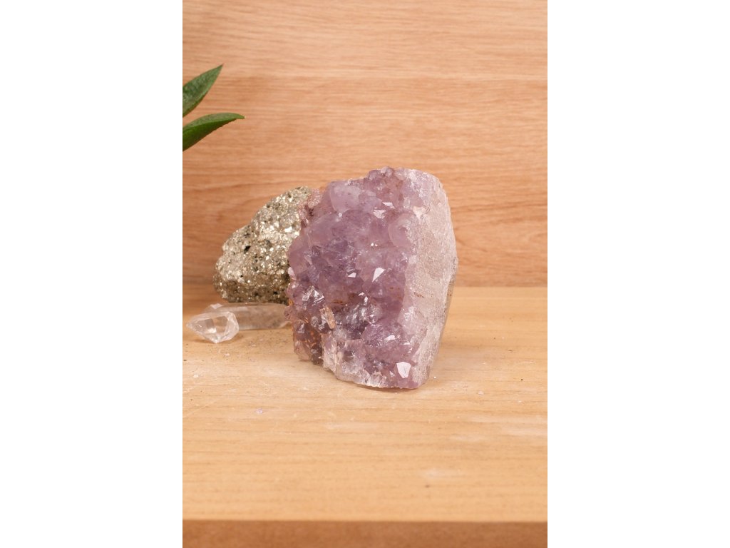 Vlastnosti: Ametyst je kámen ochrany a intuice, ale nese si s sebou spoustu dalších krásných vlastností. Ochraňuje svého majitele a dodává mu pozitivní postoj k různím situacím a díky tomu mu je pomáhá lépe zvládat. Pomáhá duchovně růst a je vhodný při meditacích (podobně jako křišťál, angelit).Čistí auru.