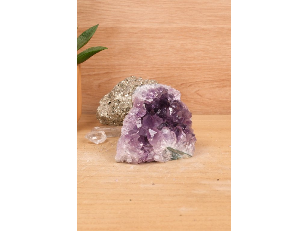 Vlastnosti: Ametyst je kámen ochrany a intuice, ale nese si s sebou spoustu dalších krásných vlastností. Ochraňuje svého majitele a dodává mu pozitivní postoj k různím situacím a díky tomu mu je pomáhá lépe zvládat. Pomáhá duchovně růst a je vhodný při meditacích (podobně jako křišťál, angelit).Čistí auru.