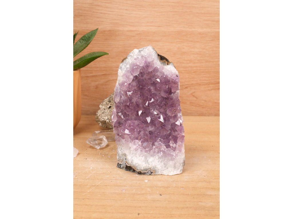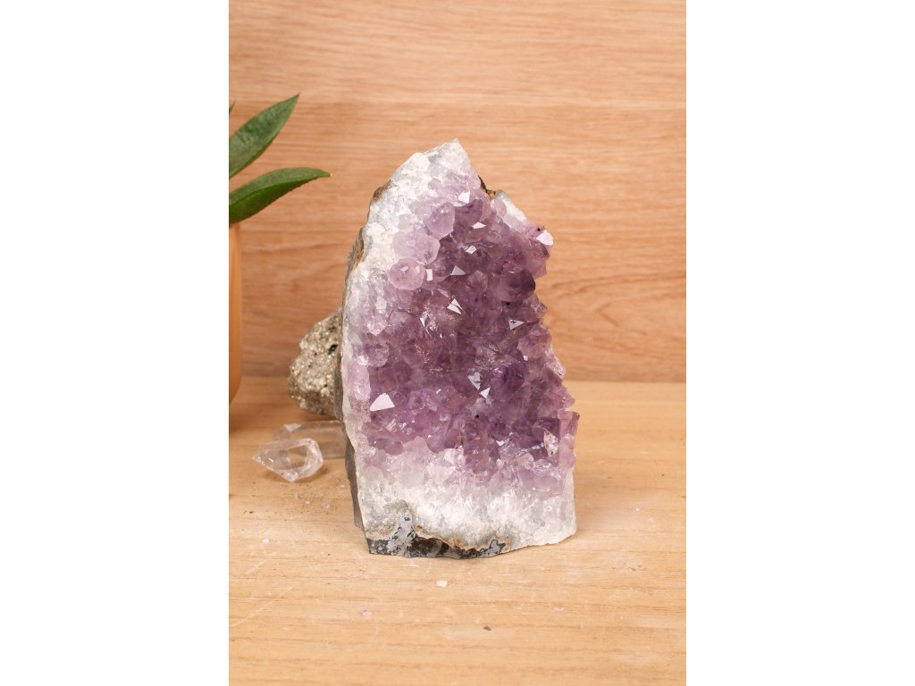 Vlastnosti: Ametyst je kámen ochrany a intuice, ale nese si s sebou spoustu dalších krásných vlastností. Ochraňuje svého majitele a dodává mu pozitivní postoj k různím situacím a díky tomu mu je pomáhá lépe zvládat. Pomáhá duchovně růst a je vhodný při meditacích (podobně jako křišťál, angelit).Čistí auru.