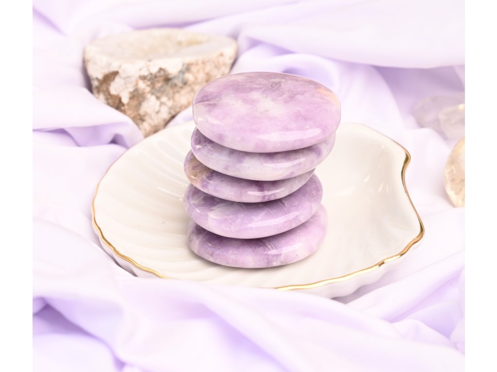 Lepidolit leštěná placka / hmatka světlejší barva (spojení s andělem, tiší hněv)