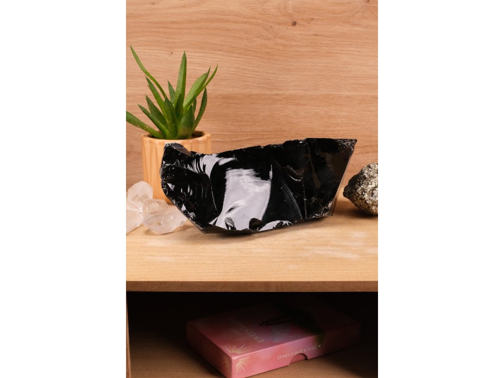 Obsidián je silně ochranný kámen, který rozpouští staré a hluboké smutky, chrání před silnými depresemi, zbavuje temné energie a čistí auru, tlumí vztek, pomáhá domácím zvířatům a chrání malé děti před strachy. Pomáhá zpracovat vlastní slabé stránky a motivuje k další práci. U mužů posiluje intuici, nadhled i vnitřní sílu.