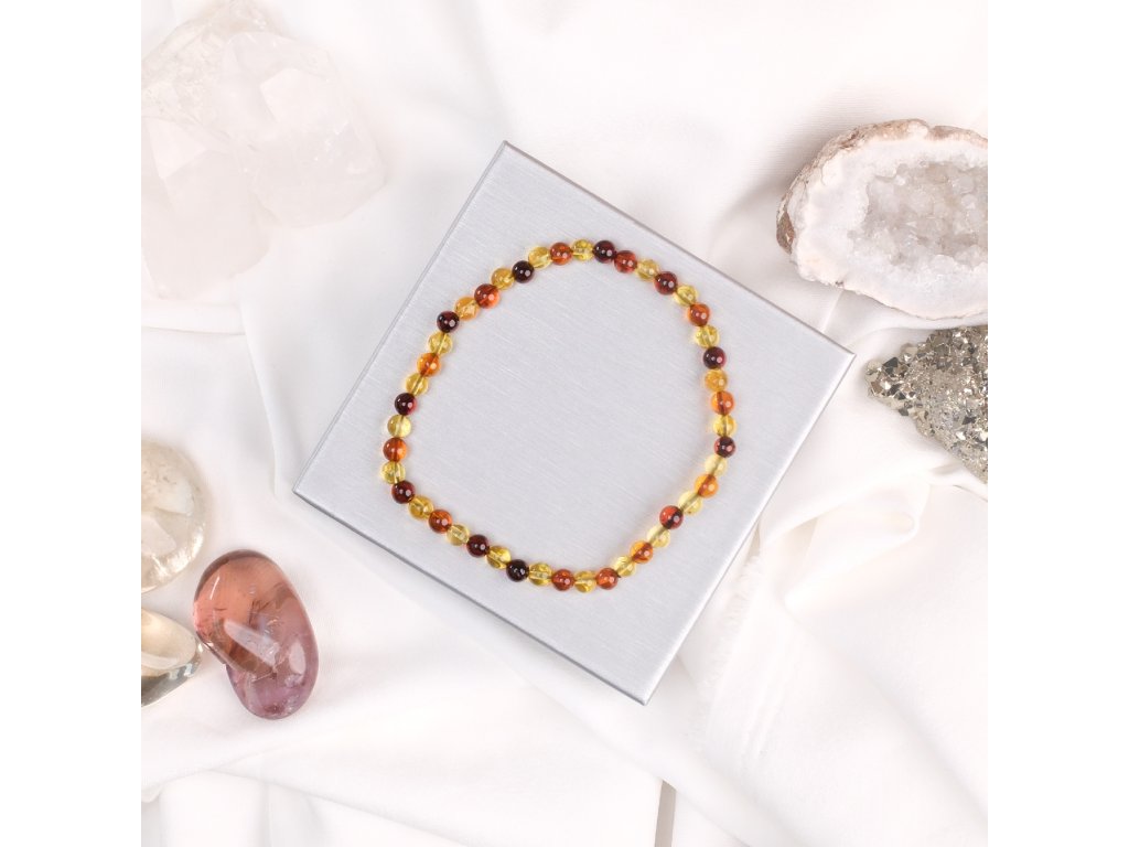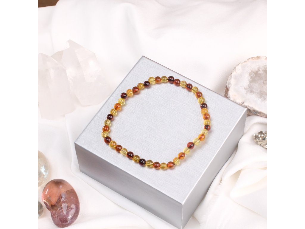 Jantar dámský náramek 4mm multicolor mix