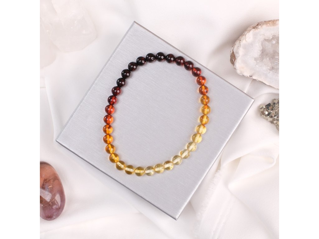 Jantar dámský náramek 6mm duhový multicolor mix