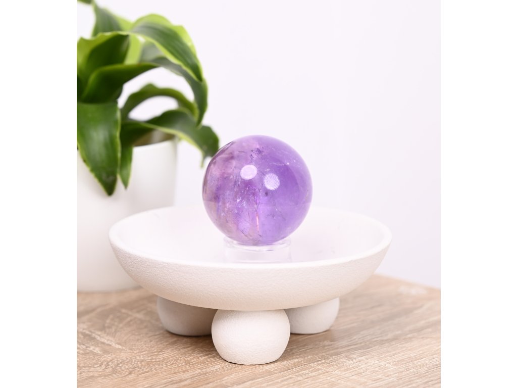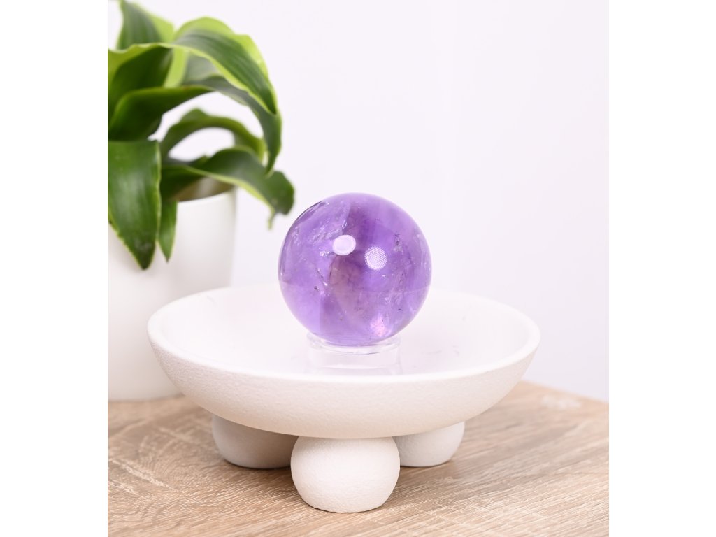 Tento tvar také pomáhá při čištění aury a odstraňování negativních vlivů, čímž posiluje vnitřní klid a rovnováhu. Ametystová koule navíc harmonizuje mysl i duši, symbolizuje stabilitu a přináší pocit bezpečí. Skvěle se hodí jak pro osobní duchovní práci, tak pro umístění do prostoru, kde vytváří ochrannou a uklidňující energii.