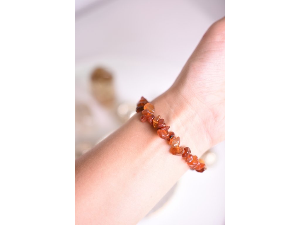 Karneol je hřejivý kamínek, který dodává odvahu, sílu a harmonii. Je spojený se zemí a pomáhá zahánět negativní myšlenky. Je zdrojem ukotvení a energie. Pomáhá nám mluvit, když to potřebujeme. Pomáhá také při bolestech a fyzickými nemocemi těla. Čistí ledviny (vztahy), zmírňuje PMS a hojí úzkosti ze sexuality. Zmírňuje závislosti a pomáhá při problémech s jídlem. Regeneruje a obnovuje energie i doma ve fyzické rovině, čistí zanesená místa. Přináší hojnost do rodiny. Je to kámen, který velmi dobře podporuje naše sebevědomí, a tudíž nám pomáhá se nebát, postavit se sám za sebe (v práci, doma - zkrátka kdekoliv). Pomáhá také najít spřízněnou duši a podporuje všechny druhy lásky a vášně. Skvěle se hodí mezi ostatní kameny.