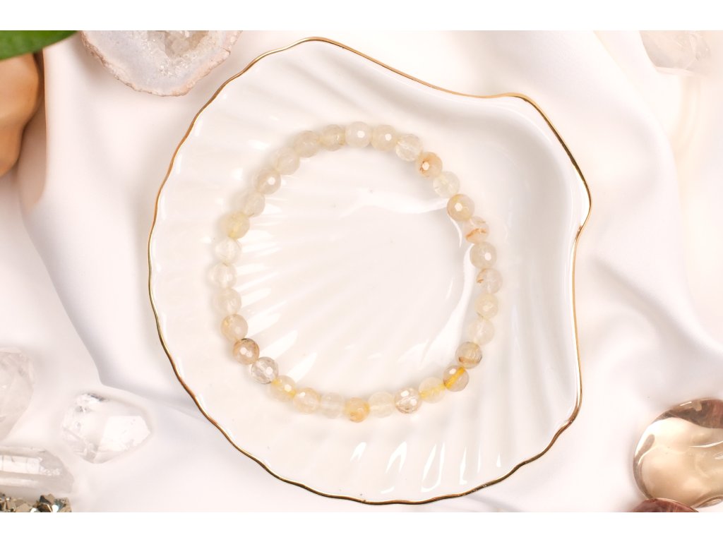 Křišťál s rutilem andělské vlasy vybroušený náramek 6mm (spojení a komunikace s andělem strážným, ochrana, duchovno)