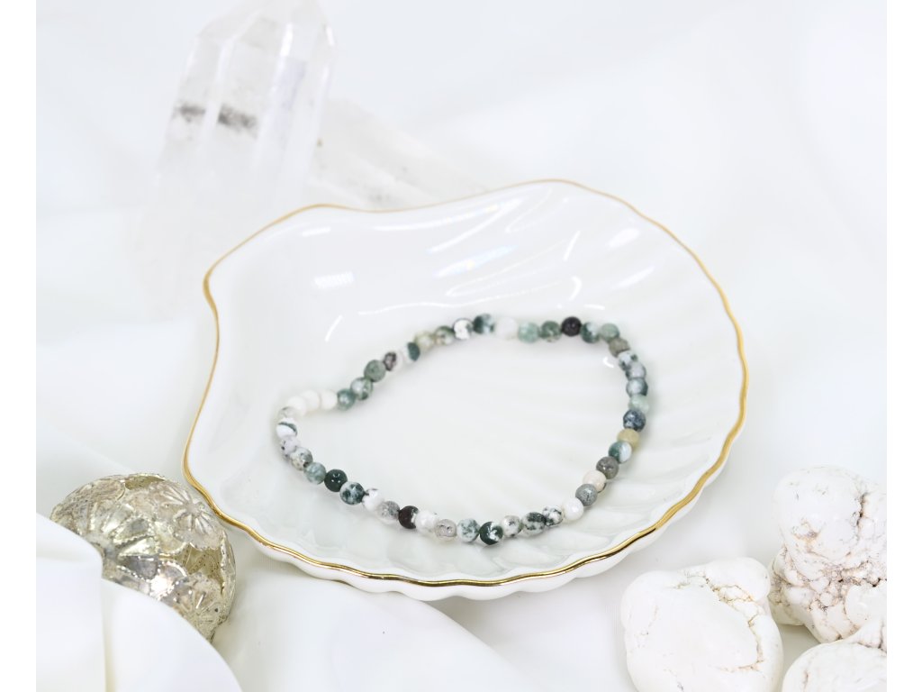 Mechový achát vybroušený náramek 4mm (osvěžení duše, energie přírody, uzemnění)