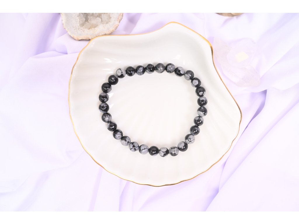Obsidián vločkovaný náramek 6 mm (jednota, talisman, život, ochrana, nové začátky)