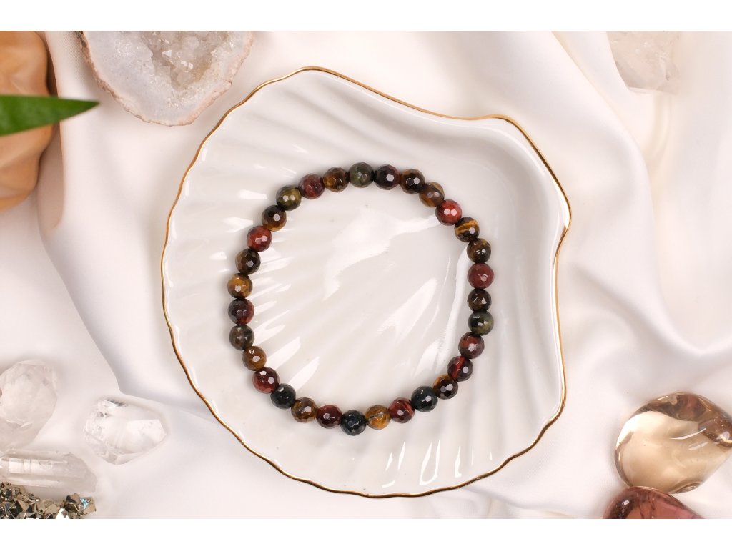 Tygří, býčí a sokolí oko mix vybroušený náramek 6mm (síla, odvaha, ochrana, rodina)