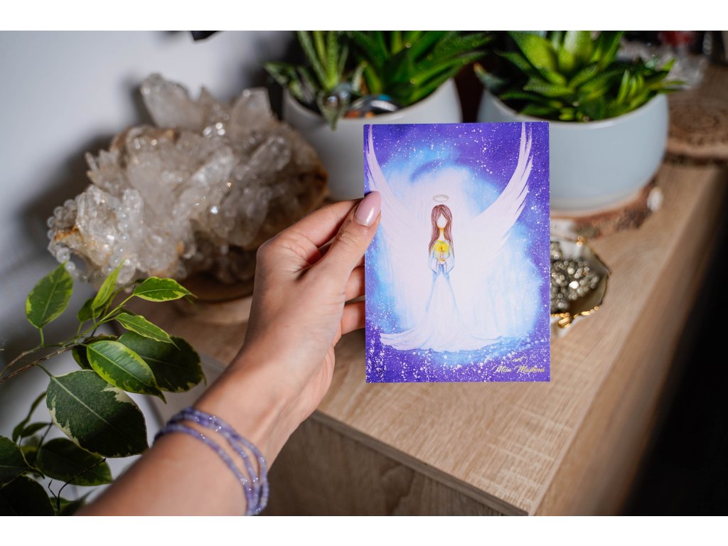 Pohlednice Anděl se svíčkou "NADĚJE A VÍRA, ŽE BUDE ZASE DOBŘE" A6