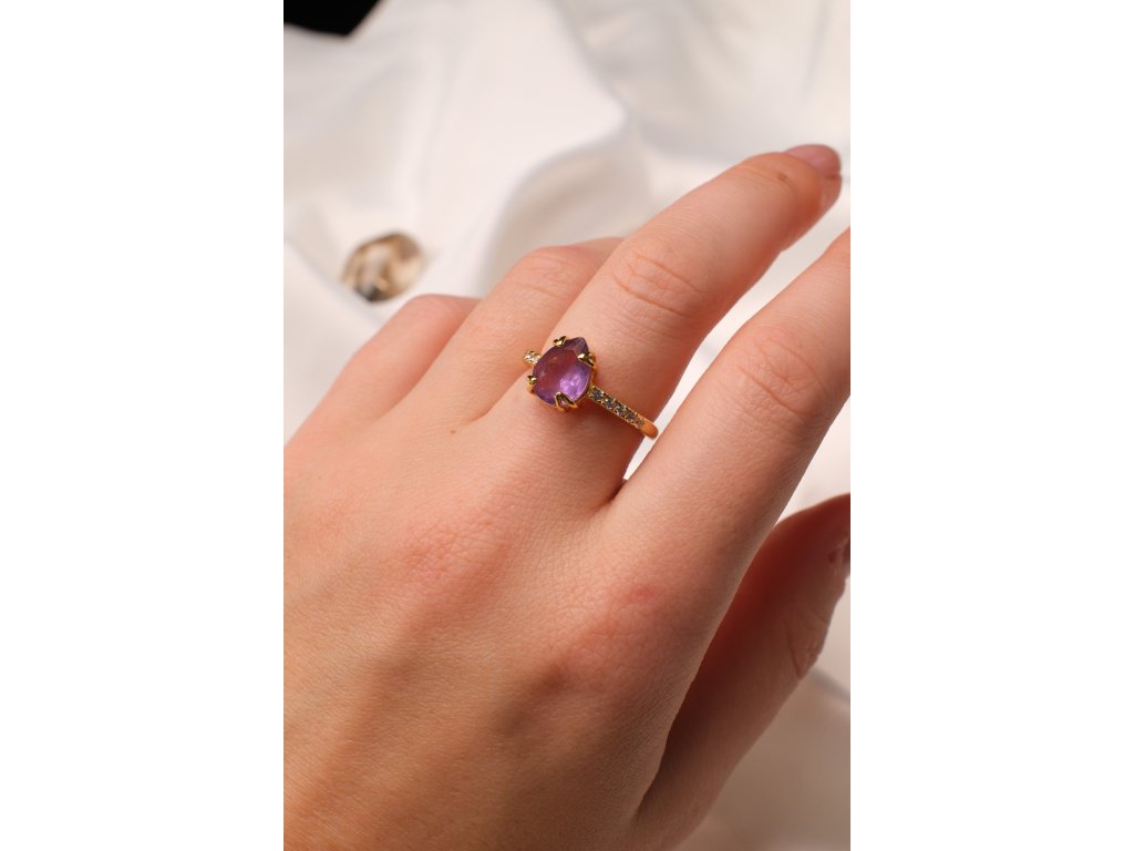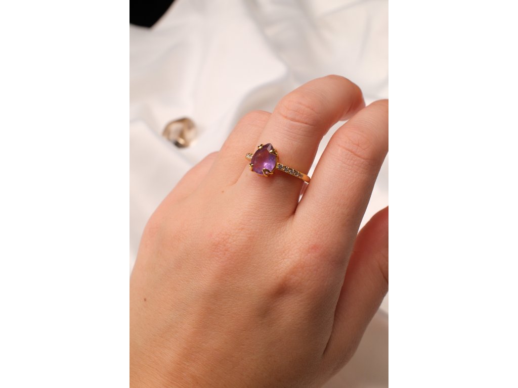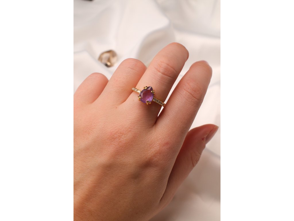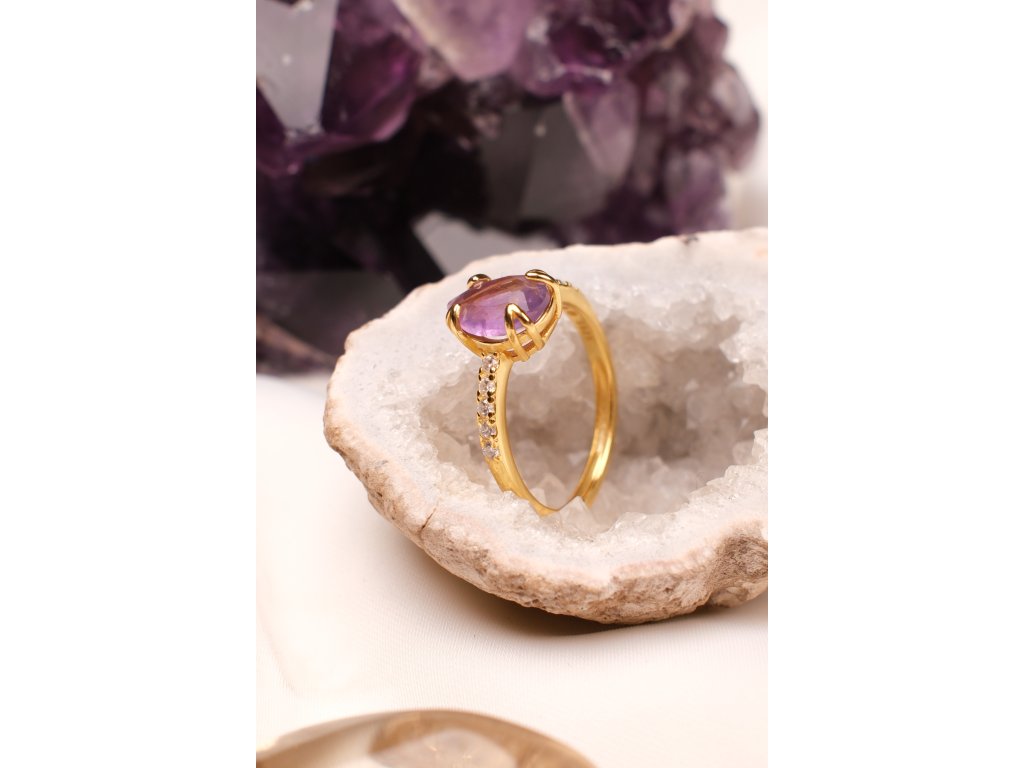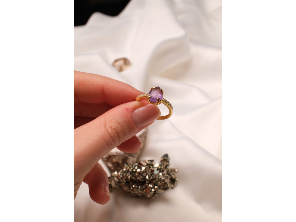 Pozlacený prsten s ametystem (uni) kapička