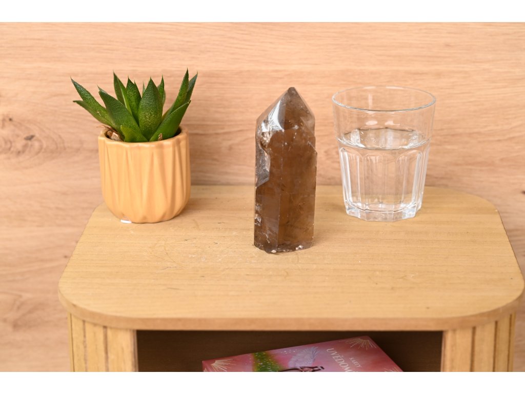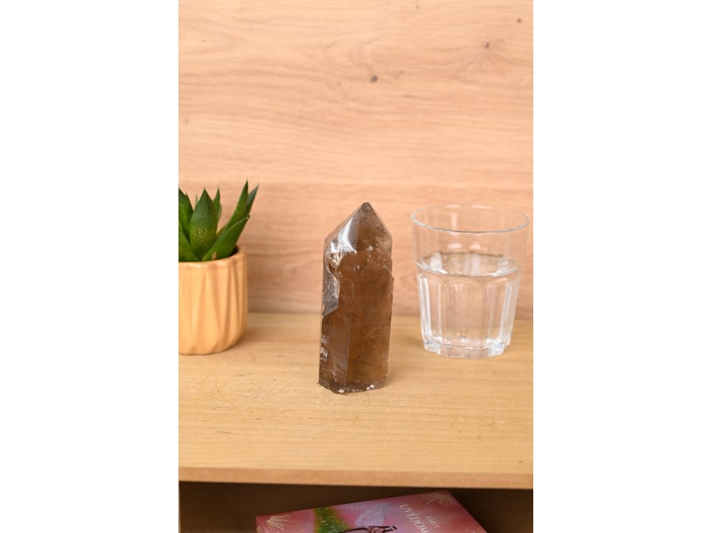 Vlastnosti: Jeden z nejtajemnějších kamenů, který je silným ochráncem a pomocníkem v meditacích. Pomáhá proti nočním můrám a zlým snům. Působí přísně, protože chrání svého majitele (hlavně na duchovní rovině). Je vzácnější a říká se jí také kouřový krystal. Uzemňuje a chrání. Posiluje v nás duchovno a touhu jít výš a poznávat svou duši. Posiluje vnitřní sílu a odhodlanost.